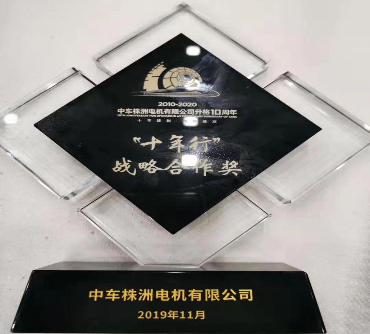 兆源機(jī)電榮獲中車株洲電機(jī)公司“十年行”戰(zhàn)略合作獎(jiǎng)